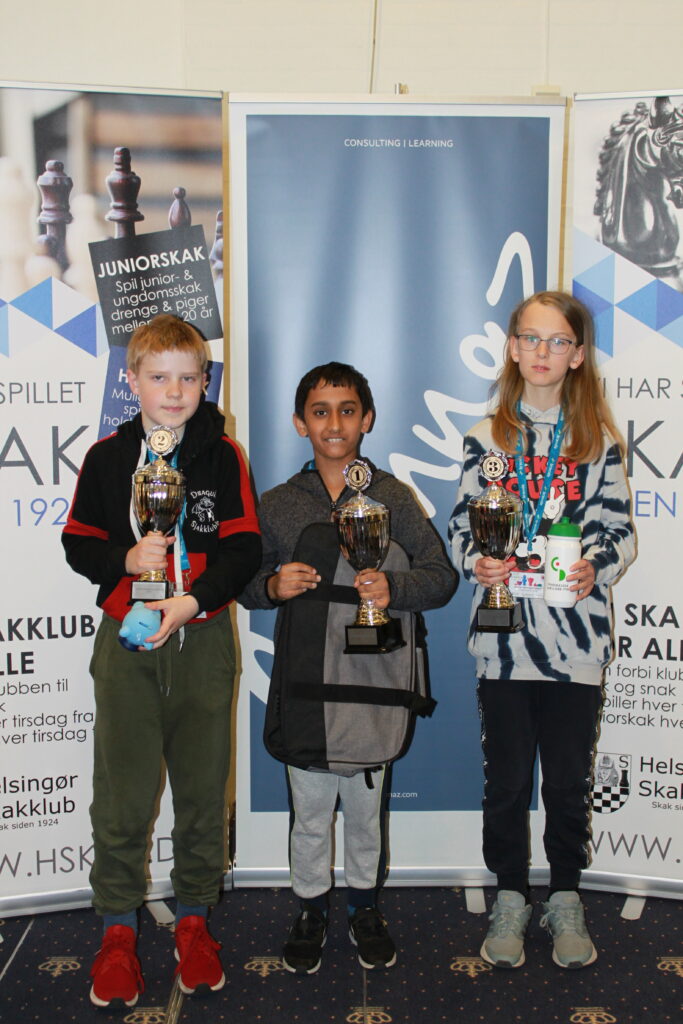 Cornelius Bille fra Amager Skakforening var en tand bedre i forhold til resten af gruppen som han vandt med 5/5. På 2. pladsen finder man Kai Christensen Yang og på 3. pladsen Anton Christensen Yang, begge fra Gentofte Skakklub.