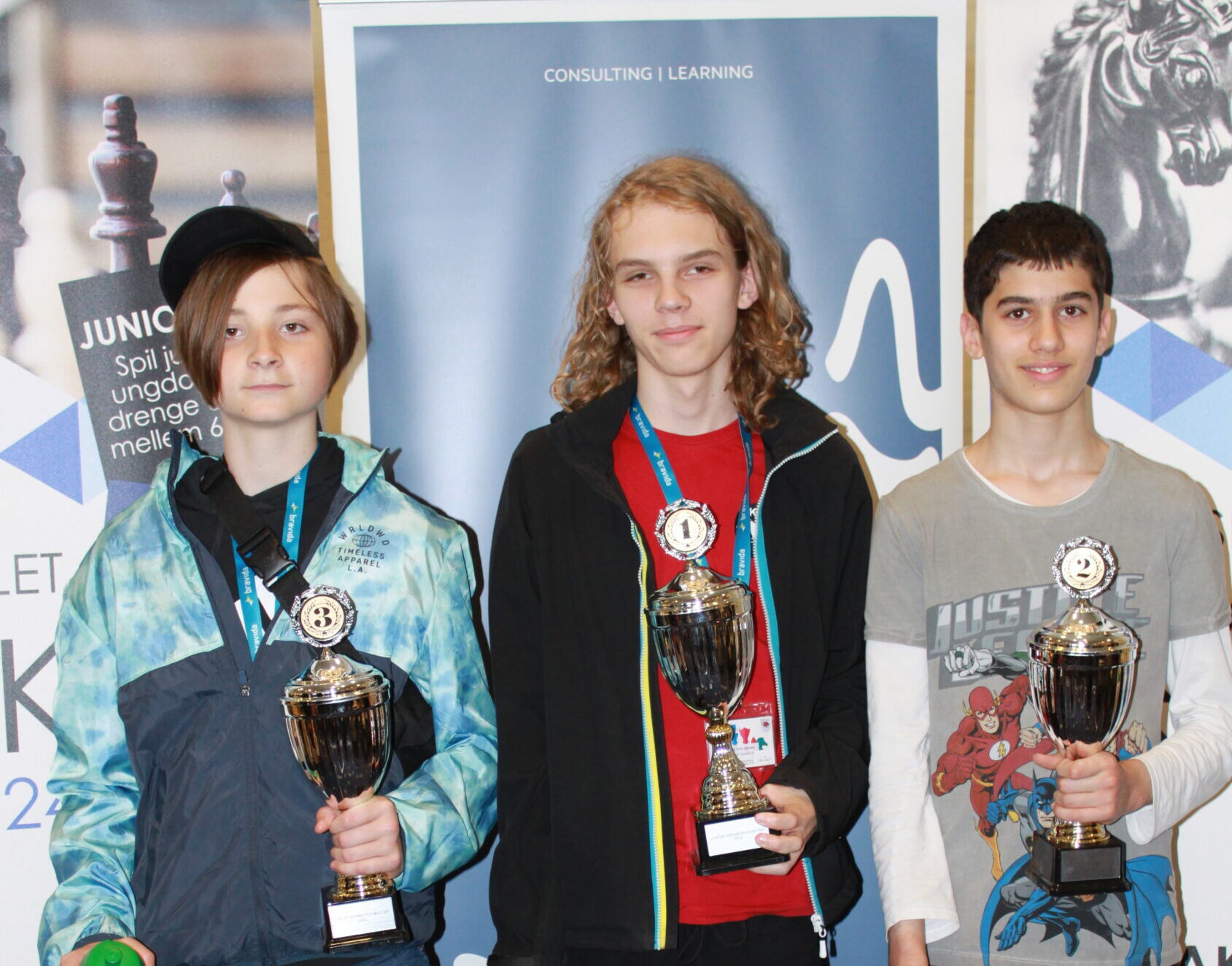 Stor tak til arbiterne Christian Vejen Weichel, Lars Erik Linderod (midten) og Henrik Mortensen, der sørgede for en god juniorskakturnering.